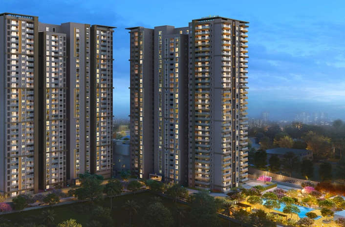 Amenities include a spacious 25K sq ft clubhouse with over 40 amenities, a swimming pool, gym, mini theatre, yoga deck, indoor games room, kids play zone, clubhouse, jogging track, and more in this expansive gated community.