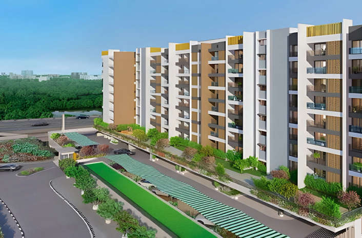 The 2 and 3 BHK residences provide extravagant amenities including indoor games, a badminton court, a swimming pool, a kid's play area, a lift, a senior citizen sit-out, lush green paths, and much more.